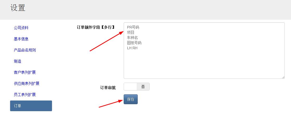您的位置:首頁 > 培訓教程 > ERP/MES軟件基礎 速易天工MES系統如何自定義訂單頁面的表頭內容 來源:通商軟件2016-11-192016-11-18 ERP系統 & MES 生產管理系統 10萬用戶實施案例,ERP 系統實現微信、銷售、庫存、生產、財務、人資、辦公等一體化管理 立即注冊免費體驗 速易天工MES系统有着强大的自定义功能,其中订单页面的表格中,可以根据企业自己的需求,添加需要的表头内容,极大的贴合了企业的习惯。 进入设置-系统设置,如下图 找到订单一项点击,如下图 出现如下图,在输入框里输入需要添加的字段,回车代表区分,输入完点击保存 在订单页面查看效果,如下图 在線疑問仍未解決?專業顧問為您一對一講解 24小時人工在線已服務6865位顧客5分鐘內回復 馬上咨詢