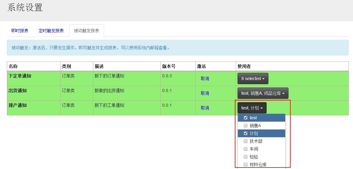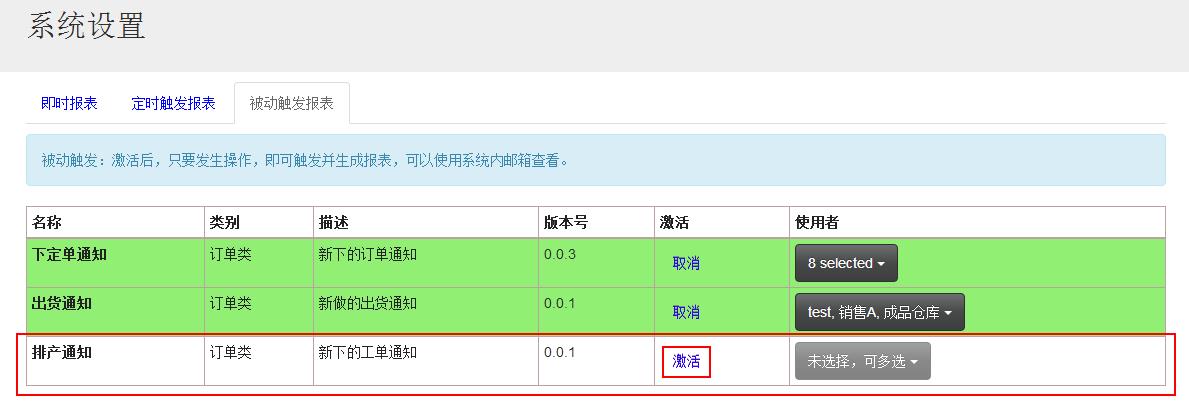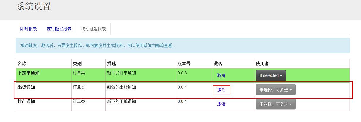 为了更加的满足更多需求,现在增加了两个被动触发表报:出货通知和排产通知