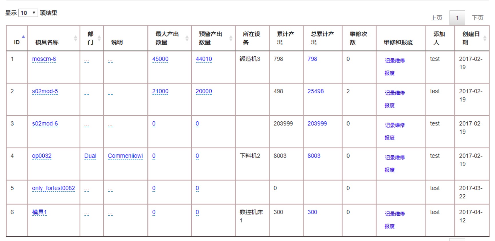 在用PDA報工產量的同時也系統自動記錄并統計模具的產量